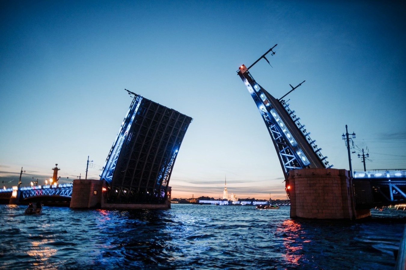 Приглашаем стать частью грандиозного городского ритуала. С борта теплохода панорамы набережных и дворцов складываются в единую величественную картину на фоне плавного движения гигантских пролётов моста над водой. Вы окажетесь в центре ночного представления, которое стало символом северной столицы.